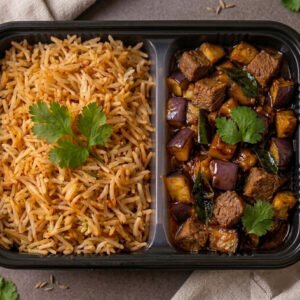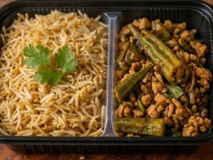 Super Protein Okra with Basmati Rice: A warm, home-style meal for 80 EGP.