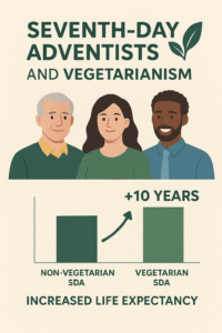 هناك دراسات أُجريت على سبتيّين “Seventh-day Adventists” تُظهر أن النباتيين منهم — أو أولئك الذين يتبعون أنماط غذائية نباتية/قليلة اللحوم — يعيشون عمراً أطول، أو لديهم معدلات وفاة أبطأ، مقارنة بمن لا يتبعون نباتية، أو مقارنة بالسكان العامّين. إليك بعض التفاصيل: