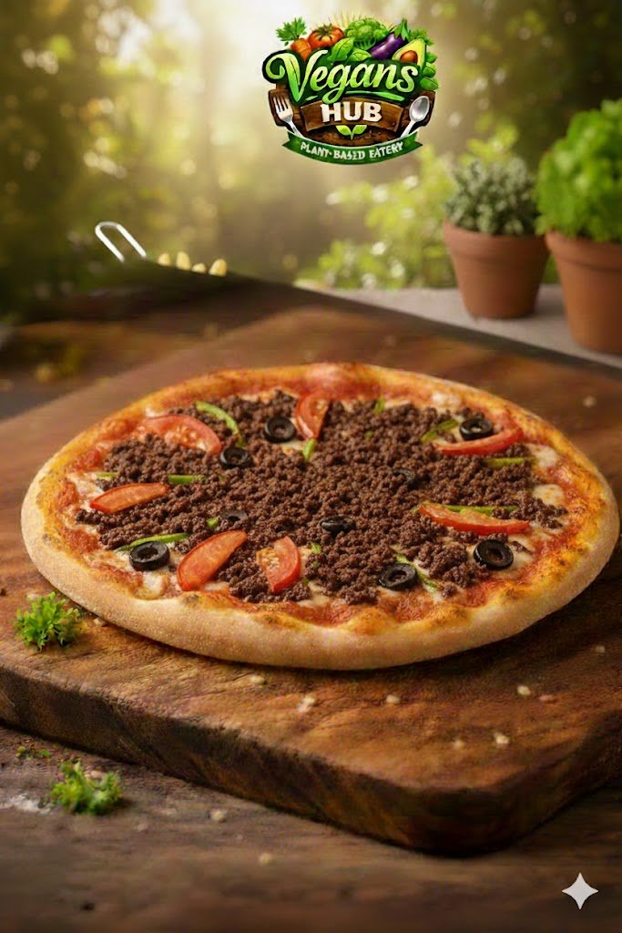Indulge in a masterpiece that satisfies your deepest pizza cravings—without the meat. This pizza features high-quality Beefy Soy Chunks that deliver a robust, 100% beef flavor using only natural ingredients. Topped with vibrant tomato slices, briny black olives, and fresh basil, it offers a perfect balance of savory protein and garden-fresh vegetables on a beautifully charred, golden crust.