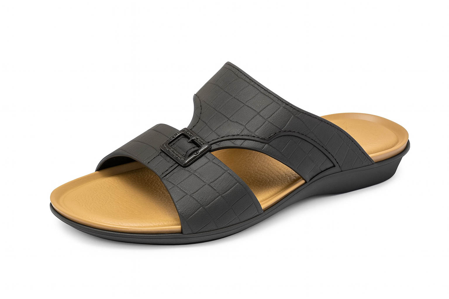 يأتي هذا الصندل بخامة مستوحاة من جلد الثعبان، مما يضفي عليه مظهراً عصرياً وأنيقاً يناسب مختلف الأذواق. التصميم الجذاب يتيح لك ارتداء الصندل سواء مع الإطلالات الكاجوال أو حتى لإضافة لمسة عصرية لمظهرك.